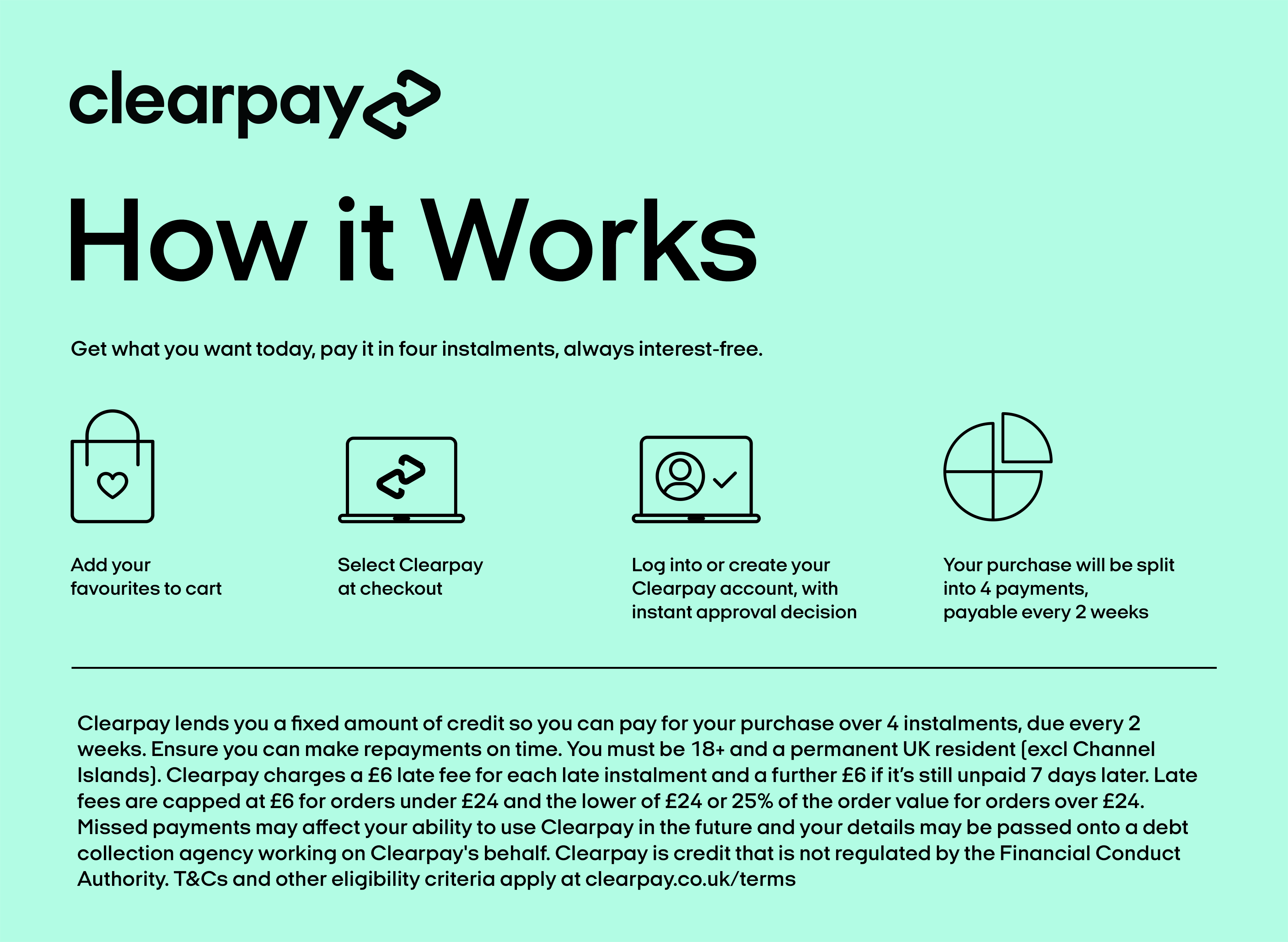 We understand that our customers value convenience and flexibility when it comes to payments. That's why we're proud to partner with Clearpay, making your shopping experience even more seamless. With Clearpay, you can split your purchases into four interest-free payments, payable every two weeks. At 247 Blinds, we prioritise affordability and accessibility, and our collaboration with Clearpay reflects that commitment. Now you can manage your budget effectively while enjoying our exceptional quality products. This flexible payment solution empowers you to shop without compromise, ensuring a satisfying experience for all. Say goodbye to payment stress and hello to effortless shopping. Choose Clearpay at 247 Blinds and indulge in the perfect window treatments while staying within your budget.