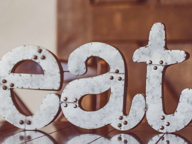 Simple yet effective, giant letters are a great way of adding some fun personality to any room, and make a great centrepiece or piece of wall art for a dining room. Think words like ‘eat’, ‘dine’, or ‘family’ to keep it relevant.