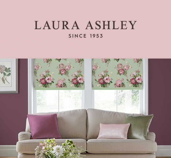 Step into a world of beauty and sophistication with the Laura Ashley blinds collection at 247 Blinds. Renowned for their romantic charm and rich British heritage, Laura Ashley designs effortlessly blend classic elegance with whimsical detail. This stunning range of made-to-measure Roller and Roman blinds showcases the finest prints from the iconic Laura Ashley archive, offering a delicate balance of nostalgia, luxury and timeless style.