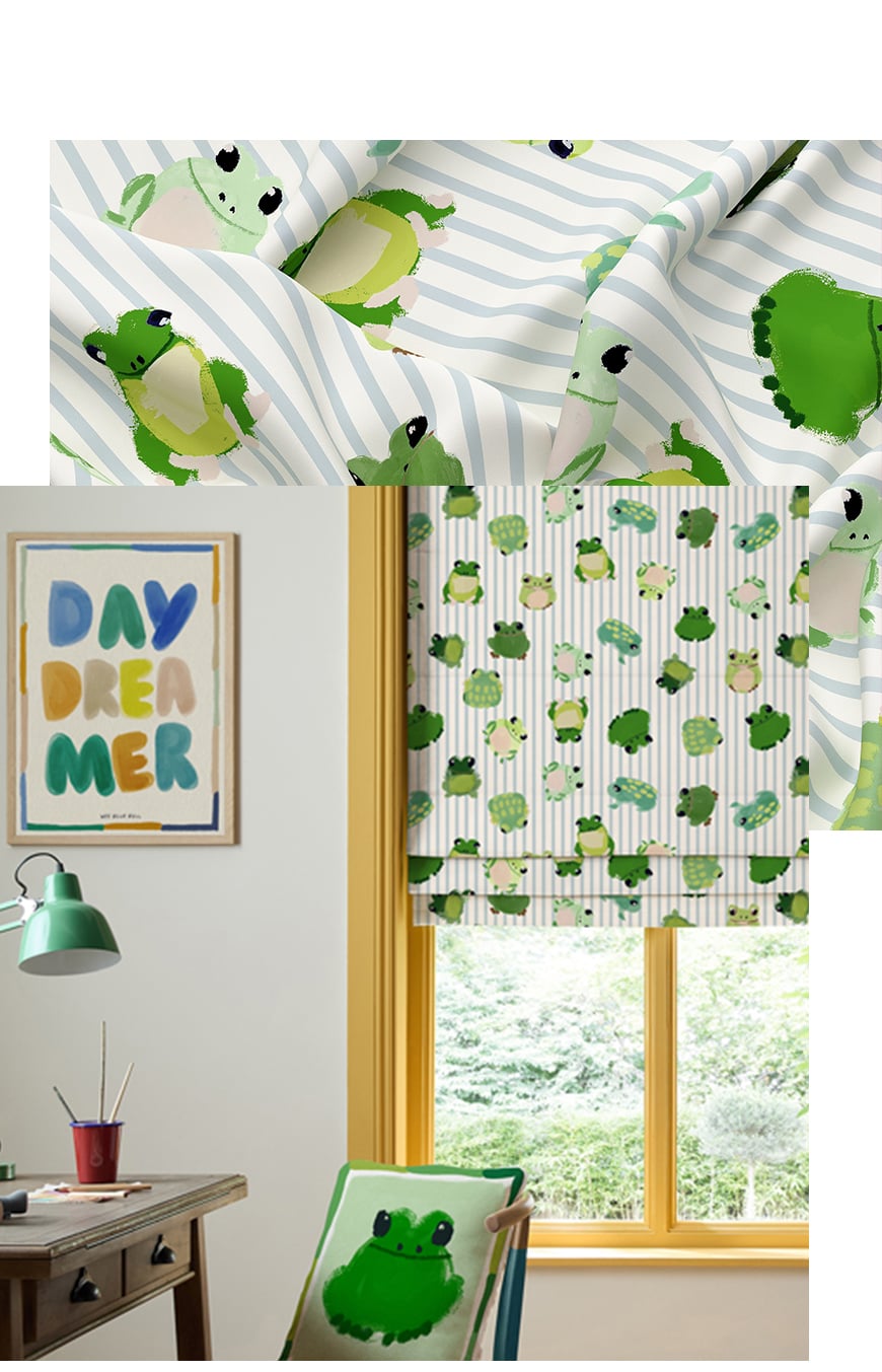Available as made to measure roller and Roman blinds, each design is created to feel magical yet beautifully considered - perfect for little dreamers and design-savvy grown ups alike. From charming frogs and ladybirds to love hearts and secret garden florals, these story-led prints are designed to grow with your child and complement the rest of your home.